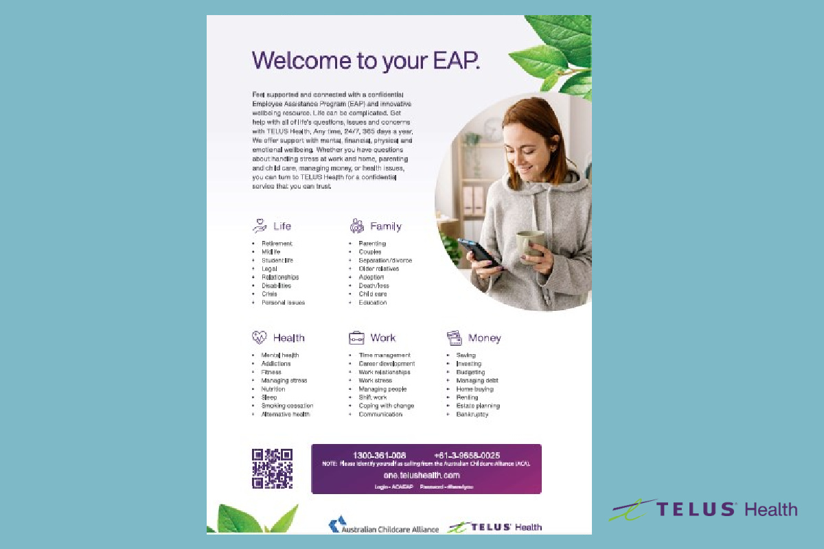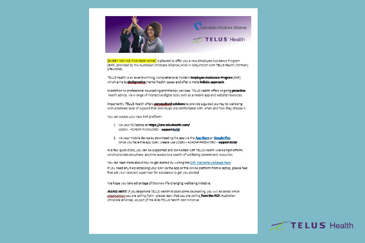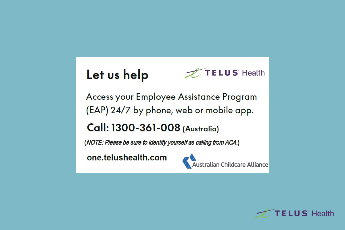 Whilst the ACA/TELUS Health EAP offers your team of staff a private resource with extensive support, it's worth checking in with them to make sure they are aware of the resource as part of your team wellbeing plan.